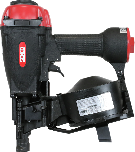 The S45CNR roofing coilnailer will drive nails ranging in length between 22 and 45mm into asphalt and fiberglass shingles and waterproof tar paper. This pneumatic coilnailer is part of the SemiPro range and is designed for light-duty, semi-professional and DIY applications. SemiPro tools feature restrictive trigger action for maximum safety and are covered by SENCO's 1-year warranty.